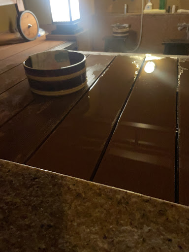 屋上の貸し切り露天風呂もサイトよりくたびれた感じで、海との間にはブライドのようになっている木製の柵があります。 海は柵の隙間から見えなくもないんですが…オーシャンビュー!という感じではないです。民家もありますし。 空だったり、海と反対側の山々を見上げるほうが楽しめました。