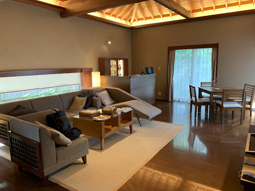 Read more第4週を宿泊予定としていますので電話にて打ち合わせをホテル側としましたが、今からガッカリしています。 夕食に寿司コースを一人5500円を2つ頼みました。 それと、特注で対応して欲しいと願い出て生ウニを出せないかを板前に聞いて欲しいと頼みました。 翌日、ホテルのバトラーから連絡があり、値段を聞いてビックリです❗ 100㌘で2万円とのことでした❗ 二人分なら200㌘では、4万円になりますと言われました❗ 生ウニの提供をお願いしたのですから板前の腕の見せ所はありません。しかし、相場の10倍の値段を請求されるのは不思議でなりません。 しかし、今回は、1パック100㌘が2万円に対して、寿司コースが5500円を頼みましたから、生ウニの4分の1程度の料理を出されることになりました❗ また、このホテル別邸ヴィラは、1泊朝食付きで10万円ですから、生ウニ100㌘が2万円と比較すると、別邸ヴィラの価値は、生ウニの5パック分の価値しか無いのかと思うだけでテンション下がりました❗ このホテルの対応は、【生ウニの提供は出来ない❗】と言えなかったのかも知れませんが、正直ではない可能性もあることを考えるだけでテンション下がります❗ 本来なら、そんな対応されたのだから、夕食をキャンセルしても良かったとと思いました❗ また、宿泊自体のキャンセルでも良かったと思いました❗ 鴨川館本館には、会社関係者も何人も招待しているくらい良いと思っていただけに、とても残念な思いでいっぱいです❗ さて、来週の生ウニ5パック程度の価値しかないと言ってる板前さんの別邸ヴィラを見て、今後の利用を考えます❗ さて、実際に宿泊して来ました❗ 妻は気に入ってましたが、全体的にお手入れが中途半端なのが目につきました❗ 外庭の備品はカビは凄いし、パラソルもカビに加えて生地は破れていました❗ 草木は、季節ごとに楽しめる様に植えられていましたが、枯れ姿は、凄まじいものでした❗ 朝ごはんは、白飯が多いのでおむすびにして欲しいとバトラーに頼みましたが、サランラップを持ってきて自分で作って欲しいと頼まれました❗ ホテルを後にするとき、汚れている部屋はキレイに掃除して帰りました❗
