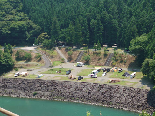 Read more大井川沿い、ダムのすぐ隣にあるキャンプ場です。 入ってすぐに管理棟があり、その先はバーベキュースペース、坂を下った川辺がテントサイトです。サイトは全スペース車横付けOK。