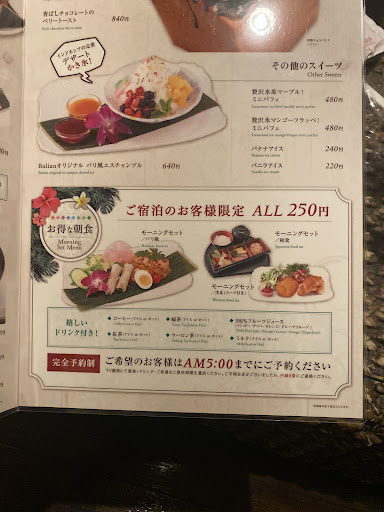 â å蚪远èšâ ããã«èªäœã¯ãšãŠãçŽ æµã§ããã¡ãã®ããã«ãç¥ã以åããã¢ã³ããªãŸãŒããäœåºŠãå©çšããŠããçšæ°ã«å ¥ã£ãŠããã®ã§ãå€«å©Šã§æ³ãããã®ä»äºã®æã«å蚪ãä»åºŠã¯å¿µã®ããé£ã¹ç©ãæåããŠè¡ããŸããç¬ ã«ãŒã ãµãŒãã¹ã®æ³šææéã»æäŸå¯èœæéãå€ãã£ãŠããŠãç¡äºã«æé£ã»ãããæ³šæåºæ¥ãŸããã ã¡ãã¥ãŒã以åãšå€ãã£ãŠããŠãæŽé£ã»ãããæ³šæããŸããã250åãšã¯æããªãã¯ãªãªãã£ãŒã§å€§æºè¶³ïŒïŒ ãã ããã§ãã¯ã¢ãŠãã®æã«ãããŒã«ç¡æã®ã·ãªã¢ã«ãããããµã©ããªã©ãããã®ãç¥ããŸããã ããã«ã®ç¡æãµãŒãã¹å 容ã¯HPããšã¬ããŒã¿ãŒã«è²Œã£ãŠããé²å€©é¢šåãå²©ç€æµŽãªã©ã®æœèšã®ã¿ã§ãé£äºã®äºã¯æžãããŠããŸããã ããã³ãã®æ¹ããã®æ¡å ããéšå±ã«ããã«ã®ãµãŒãã¹å 容ã®ååïŒã®ãããªç©ãç¡ãã®ã§ãç¡æãµãŒãã¹ãããŠããäºæã»äºçŽãããªãã»å©çšå¯èœæéã»å Žæãªã©æžãããŠããç©ããã£ãŠãããã®ããªãŒãšæããŸããã çç¥ããŠããå©çšè ãããåŸã«éããããšãåºæ¥ããåããŠã®å©çšè ã¯å€ãã®ãµãŒãã¹ãç¥ããã«å©çšåºæ¥ãã«ãã§ãã¯ã¢ãŠãã«ãªã£ãŠããŸãã®ã¯ãã£ãããªãããã«ã§ãã
