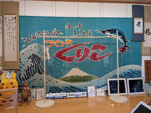 Read more友人の勧めで、どうしても!ということで気仙沼から船に乗り、大島へ渡りアインスくりこへ。||震災の被害を受けた為か、新しい建物(客室のみ)があり、その二階に泊まりました。|5人で宿泊したのですが、広い部屋で快適でした。||お部屋は綺麗で畳とテーブルと押入れとテレビ特になにもなくて、実家のような寛ぎ方が出来ます。|とはいえ、洗面台と御手洗は部屋にあったので、特に不便ありませんでした。||くりこといえば、夕食時の宴会♡|大広間に数グループが一緒のタイミングで宴会を共にします。|他人との時間を共有するのを楽しめない方はまずこの宿には来ない方がいいです。|何故ならこれでもか!と出される美味しい海の幸に舌鼓を打ちつつ、|ご主人と気仙沼ちゃんの仕切りのもと開催されるカラオケ大会が開催されるのです!|立候補した人が前の舞台で歌うシステムなので、聴いてりゃ安心、とか思ってたらご主人と気仙沼ちゃんが様々な小道具を繰り出して、見てる人に身に付けさせて、半強制的に参加させられます。|それがまた楽しい!|そして何よりご主人と気仙沼ちゃんが可愛い♡♡||そして宴会のあとは希望者をバスに乗せて、ご主人が震災当時の様子を説明してくれます。|気仙沼からの炎が海を渡って大島まで流れ着いたことなど、想像するだけで胸の苦しくなる話が多いですが、お話を聴けて本当に良かったです。||とてもとても素敵なお宿でした...