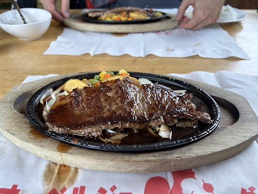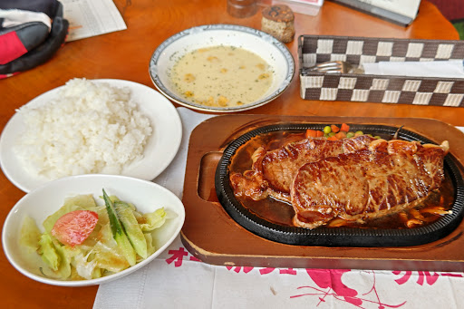 Read moreよく行く木島平スキー場に有名なレストランがあるということで初めて行ってきました。今年、リフト代がとても安くなっているのでその分レストランで奮発することにしました。 開店直後に行きましたがテーブルがちょうど満席で、スキーブーツを脱いで上がる大きな囲炉裏を囲むテーブルに通されました。 大人2子供2で、ハンバーグ定食2つ、Wサーロインステーキ定食1つを注文しました。 サーロインステーキはシェアして食べましたが、ソースが懐かしい洋食の味でとても美味しかったです。でもハンバーグの味はどう伝えたらいいのか分からないけど違和感というか変な味がしました。これで通常の味なのかよく分からないですがソースは美味しいので構わず食べました。 ご飯は通常でも大盛かのように多くモリモリ食べられます。 有名人もたくさん来店しているようで沢山の写真が貼ってありました。 なぜ長野に数ある有数のスキー場の中、長野県民のためにあるようなローカルなスキー場に来るのかよく分かりませんが、もしかしてここのレストラン目当てなのでしょうか… ドリンク付けて合計7500円くらいでしたが、スキー場で何処にでもある冷凍食品で温めるだけのカツカレーや麺類がバカ高い食堂よりは、手の込んだ料理を食べた方が家族のスキーイベントとして充実感が...