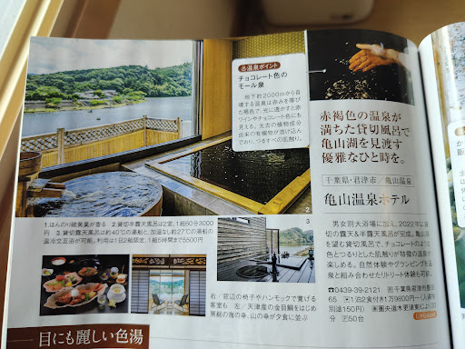 全体的には、満足行く温泉施設でした。 兎に角、温泉が出っ放しなので、このトロトロの源泉を何とか多くの人達に届けられないかを試行錯誤しているようです。 私達は、ホテルというよりは料理と温泉を楽しむ日本風旅館という感じでした。 それと、次回の予約で使える貸切風呂無料券をもらえました。9ヶ月以内の予約は無料となるようです。 また、貸切風呂無料券を選択しなければ、他の物を選択肢としてチケットに記載されていました。 恐らく、房総エリアの温泉を楽しむには、この施設も選択肢として大いに有りかと思います。源泉かけ流し温泉の黒湯は他にもありますが、大浴場を一人で使えるという時間帯もある事は、大いにお得感あります。何故なら24時間利用可能だし、部屋が14部屋程しか無いからです。 チェックアウトには、3人のスタッフの方々にお見送りしていただきました。 また、帰って来ます。 最後にホテル~の観光スポット。 ©️チバニアン迄車で30分~約70万年前の地層の逆転が見られます。世界で数ヶ所しか無い貴重な逆転地層が千葉県のこんな場所にあります。 ©️アクアライン迄車で30分~海ほたるパーキングがあります。アクアラインは、ハマコーさんの産物ですね。(笑) ©️鴨川シーワールド迄車で25分。 ©️マザー牧場迄車で30分。 ©️かつうら海中公園迄車で40分。 ©️木更津の三井アウトレット迄車45分。 ©️養老渓谷迄30分~紅葉以外も避暑地として様々な滝を見ながら渓谷を散策出来ます。 ©️三石山観音寺迄車で10分~縁結び、海難避け。 ©️七瀬川渓谷迄15分~新緑や紅葉バイ菌で楽しめます。 ©️久留里城迄車で20分~豊富な地下水に恵まれた場所デ掘り抜き井戸が多数ありその水での酒造で有名。 ©️亀山ダムは、ホテル近場徒歩圏内。 ©️亀山水天宮徒歩圏内。 ©️幸運の鐘迄4キロ。 ©️大福山展望台迄5キロ。 ©️八雲神社迄5キロ。 ©️梅ケ瀬渓谷迄5キロ。...