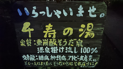 外に出ると、施設の一角にもう一つの看板。「千寿の湯 源泉...