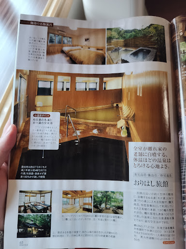 Read more5月下旬九州旅行の5日目の宿は、日本秘湯を守る会会員宿、鹿児島県霧島市牧園町「妙見温泉おりはし旅館」さん。明治12年創業。 プラン名:源泉かけ流し≪黒豚しゃぶしゃぶ懐石≫ 四季折々の懐石と郷土の味を堪能!★客室露天は24時間入浴可能★ 平日宿泊・一泊二日 29,700円(大人)× 2名 小計:59,400円 この客室温泉付きがホームページによれば、一人旅でも49,200円から泊まれるようです。 炭酸水素塩温泉(ナトリウム・マグネシウム・カルシウムなどミネラルを含みます) 温泉は、大露天風呂「えのきの湯」。サウナ付き。広くて適温で、とても気持ちのいい湯でした。チェックイン後、夕食後、朝と3回入りました。 別館「山水荘」にある内湯のキズ湯・竹の湯。 妙見温泉のなかでも、当館にだけ自噴しているのがキズ湯(33°C)、チェックイン日の夜は清掃か何かで入れず、翌朝入りました、ぬる湯なのでじっくり入れます。 露天風呂付き離れ客室、僕らは水明でしたが、オッサン二人で部屋の露天風呂は入らないので(笑)、僕はチェックアウト間際に入りました。 立ち寄り湯として、内湯のキズ湯・竹の湯、入浴時間10時~14時受付終了・15時まで入浴可、料金大人一人500円。大露天風呂「えのきの湯」は、お食事とご宿泊のお客様のみです。 えのきの湯、キズ湯・竹の湯とも撮影掲載許可済みです。