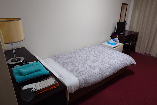 The Yuo Onsen is in a Southern Suburb of Kofu, not far North of the Bypass 20 road, and close to a railway line (the nearest station is about 10-15 minutes walk away). However it is sufficiently far from main roads to be very quiet.||||Approaching, all signage is in Japanese script - there is nothing to say "hotel" in Roman letters at all. Staff are friendly, but - as might be expected - speak little English. Initially assigned to a very smoky room, I managed to ask for a non-smoking one, which was duly found - right next to the original one. Rooms are quite spacious by the standards of budget hotels in Japan, with a reasonable bathroom, fridge, cable internet connection, etc. Hot water for green tea is only at the end of the corridor.||||As a hotel guest, you are allowed free use of the onsen baths. These are very traditional, and not aimed at tourists at all, but the sexes are segregated. My advice here is check the basic etiquette (all the main tourist guidebooks will tell you what not to do), and then just go for it - no-one is bothered by the appearance of another hotel guest. As in most such onsen you need to use two lockers - one at the entrance for your footwear, and one in the main changing area for your clothes.||||There are no meals available, although a small range of packaged foods are sold by reception. However half a mile South on Route 20 there are all the chain restaurants you can imagine - the Aiya Japanese Restaurant in the Skylark group is one of the closest and a...