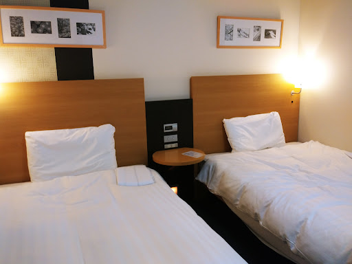 On a road trip passing through Koriyama, we were looking for a decent priced hotel that offered free parking and in-room wireless internet. My husband found an ad with a discount for this hotel in a Japanese magazine and we booked one night for 8,000 yen (just under $80 USD). It is located just down the street from the train station. Other perks included free continental breakfasts with a free 24/hr coffee machine in the lobby. The room was about the typical size of Japanese hotel rooms, not so large, but the layout and amenities were well-designed and everything looked new and spotless. The TV had one English channel: CNN. The bed was also quite comfortable and there was a small refrigerator. I'm not sure whether the front desk staff spoke English or not because my husband checked in using Japanese, but the form he filled out with his name, address, etc. was available in both Japanese and English. The only reason I didn't give it a perfect rating was that I noticed a faint smell of urine in the shower, which is odd since everything else was so clean and Japanese are usually very meticulous about cleanliness. Besides that we were very satisfied with our stay here and will look for branches of Comfort Hotels in other cities we visit...