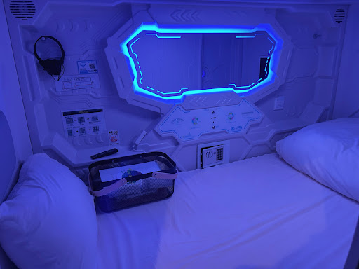 想像以上にルーム内の広さがあり、 常に暖房も効いているので快適ですし、 寝具も寝心地がよかったです。 ルーム内のパネルに軽く触れると 照明の色を変えれたり、風量調整できるのが 近未来的で面白いです。