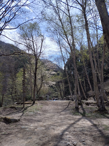 Read more集落の中を抜け、林道を走り、最後は橋を渡ってから坂を登る事になります。 道幅は基本的に1車線、離合は場所を選びます。 ただ、集落を過ぎてからは1軒の家とキャンプ場しか無いので交通量は少ないです。 サイトは坂を上がって左側に緩やかな段々畑の様に左右にあります。 受付は坂を上がって右側。水場、トイレも此方側です。