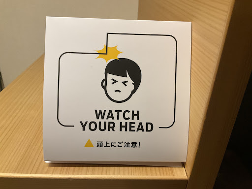 Also, the room door opens outwards to the hallway because there is simply not enough room. If you are under 5’3 or 160 cm in height, or you only going to stay one or two nights, it’s manageable. See the photos for yourself. Even the management placed a “Watch Your Head” sign in the room. Also, the red arrow indicates the added soft bumper to the spot where people often hit their heads. So use at...