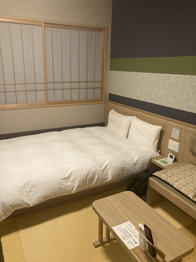 Brand new hotel from the Dormy Inn branch situated at the end of a bustling shopping street. It was easy to get to from Kumamoto JR station via the tram. Tatami is comfortable and the hotel is very clean! The public onsen can get busy and unfortunately the floors were wet in the changing room so it was a bit gross to step into everyone’s feet juice. Maybe they can consider having an onsen attendant wiping the floors more regularly or have a bigger drying mat at the onsen entrance. The staff also forgot to mention there is a special access code for the women’s onsen, which I think should be brought up at the moment of check in. Otherwise our stay was very satisfying. We particularly enjoyed the fresh tempura at breakfast, and I even got to try stewed horse for the first time! Overall do not hesitate to book...
