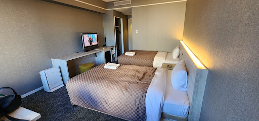 Read moreThis seems like a brand new property. Even though the rooms are a little bare bones, I don't think I have ever stayed at hotel in such immaculate condition. There is none of the wear and tear from luggage rubbing against trim or walls. No stains on the carpet or walls. The cost for our stay was extremely reasonable ($24 per night). There is self-service laundry, an ice maker, and a microwave available to guests. Additionally, there is an area to pick up amenities such as toothbrushes, bath salts, and instant coffee. The small gift shop sells local demin products. The onsite restaurant offers afternoon tea (which we did not try at this location. However, based on our experience at their Fukuoka property, the tea is really impressive). The location is a short walk from the historic district and the train station. The one down side is the beds! We stayed in a twin room on the third floor overlooking the parking lot. The beds are extremely firm-kind of like sleeping on the floor. The pillow was also extremely firm. This combination of firmness made it hard to find a comfortable position...
