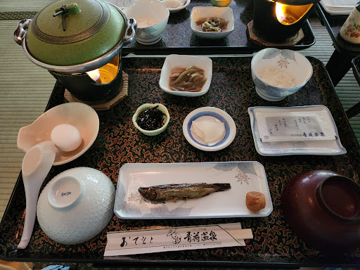 Read moreSimple, no frills, comfortable ryokan set in a very secluded beautiful narrow wooded valley with a rushing stream outside the windows. Be aware: the smell of paraffin from the lamps is unmistakable, pervasive, catches in your throat, and your clothes will smell of it after you have left. Having got that out of the way, everything else is makes it a really special experience. There is no wifi, phone signal, no television, so you can slow down, relax and appreciate the onsen and the nature surrounding you. The meals were healthy and delicious, featuring fresh foraged ingredients. You will not go hungry. We requested vegetarian meals a few days in advance. Eating the meal in the tatami dining room in the lamplight and watching the light fading outside was beautiful.|You will make up your own futons and there are shared toilet and tooth cleaning facilities. Everything is spotlessly clean. |There are several baths: two with a view of a delicate waterfall, which are not very hot, so good for summer, a mixed sex rotemburo with times for women only, an ofuro in the main building, and 2 cypress baths in a cypress building with a view of the river, and the water is gloriously hot. Plus an outdoor footbath. All are lit with atmospheric lanterns. |There is a car park a short walk up the hill from the ryokan.|The old wooden main building is full of character and decorated with items of local folk art. There are some small areas of garden planted with native plants near the entrance, but the rest of the surroundings are just the area's...