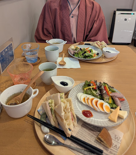 Read moreThe people at Hanaingen could not have been more solicitous, friendly, and helpful. They were very thorough at checkin, and offered to help us out with almost anything we needed. The inn has been recently remodeled and is very lovely and modern. It is located only a few steps from the main plaza in Kusatsu. There was a welcome snack and drink, flavored waters and coffee were available at all hours, and the included breakfast was fabulous. There are four private onsen baths and they were all lovely, comfortable, and easy to use. Our room was a bit small, but well-appointed. Showers/baths are communal but the rooms have separate sinks and toilets. Unfortunately, it was pretty cold in Kusatsu for May, but our heater did not work. Also, the wifi was very spotty, but seemed to work fine on the main floor. We inquired about the heater and wifi but the night staff was not able to solve either problem, although they did bring a space heater for us. The staff apologized for the inconvenience but because it was Sunday, they were not able to fix either problem until after we left. All in all, we had a very nice stay but considering the two problems and the lack of a shower in the room, we felt it was a bit too expensive. Nevertheless, we would probably stay there again and can generally...