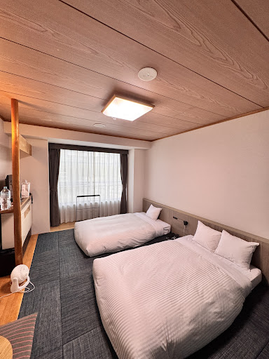 We booked the Tatami room which had Japanese style futons. It was adequate for our needs and cleaned well each day so we were happy enough. In hindsight I should have booked a room with a regular bed because we both have knee problems so getting up and down was a bit of a mission.