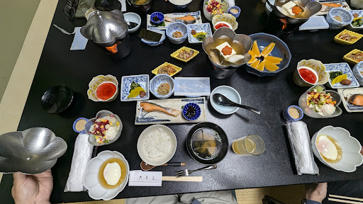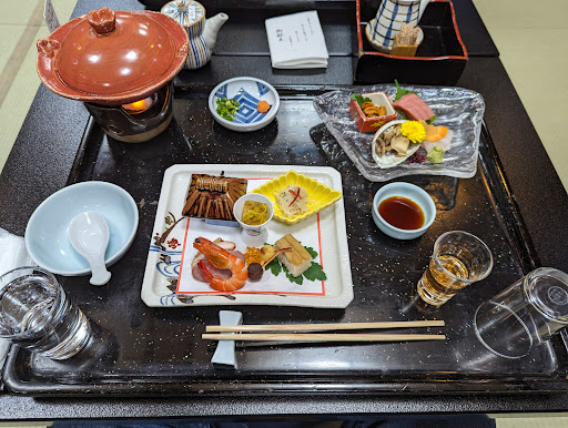 Read moreWe're getting ready to book our SECOND stay - here's why:||My wife and I stayed two nights mid-November 2015. The weather was a little wet, but as we live in a desert town in California, the light mist added to the romantic and authentic sense of Kusatsu-onsen.|| Our room was beautiful, and huge! the large sitting/dining area was 13 tatami, plus a 6 tatami sitting area, and 7 tatami sleeping room! || Our first night's dinner was in the room; sitting in our yukata at the table. Two young women in full kimono - kneeling at the sliding door - announced themselves, and were THE MOST PROFESSIONAL and graceful servers we've ever experienced, anywhere, ever! It didn't matter at all that we spoke little Japanese, and they little English - the meal was gourmet-quality with many courses, many dishes and all perfectly prepared, elegantly plated, and served to us as though we were...traveling nobility! Halfway through that meal we couldn't help but feel as though we'd stepped back 200 years to the old Edo Period.|| Breakfast was also meticulously Japanese - elegant, simple yet complex, and perfectly served by our kimono-clad awesome server.|| It was really cool how our (last) name was hand caligraphed - in English and (Katakana, I think) - and posted out front of the Inn.|| There may be other Ryokan that either cost less, or perhaps look "new" - and that's fine. We spent 2 weeks in Japan in 2015, and are getting ready to book our next 2 weeks in Japan for 2016 - When it was time to leave, my wife began to cry as we began taking off the traditional clothing and had to return to the modern world: Over the course of two days and nights we had been taken back in time - the only thing missing as we strolled `round the "Yubatake" through the moonlit mist under an umbrella were my Samurai swords! This is why Osaka-ya at Kusatsu-onsen is our choice.|| If any of my review touched you, or made sense, PLEASE try to stay 2 nights - I know it looks really expensive 'on paper', but you will NEVER FORGET this experience! And when I added up the A+++ room, 2 gourmet-quality dinners and 2 gourmet-quality breakfasts, it's not completely insanely priced!|| Since there is NO TIPPING in Japan, we wanted to show our gratitude by bringing mementos from our hometown such as decorated key chains, and gave them to those whom we were touched by - such as our server, and a really cool bartender at a tiny bar in Kyoto...they will be touched by the...