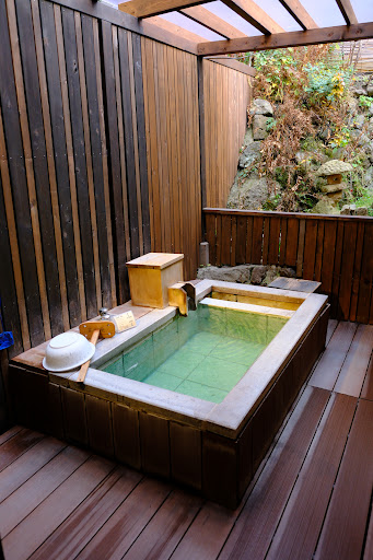 Private outdoor bath was great with average view. Water temp was perfect and I had a great rest.