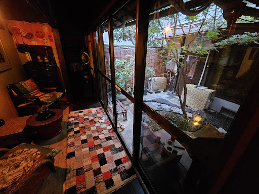 Outside the rooms, the house has a couple common areas, including one cozy corner overlooking the interior garden all machiya seem to have. It's truly a beautiful place.