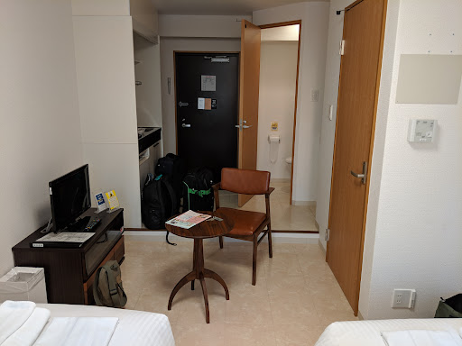 Read moreEstá cerca de la estación de kyoto y de puntos de interes que has de ver. Las habitaciones son amplias, con camas cómodas. Es tipo apartamento con una mini cocina y su lavabo. Las duchas compartidas pero la verdad que muy bien, son individuales con un cuartito privado para ti. El personal, super amable, y están las 24 horas. Tienes todo el menage como si fuera un hotel, tés y cafés gratis. Wifi bien de calidad. Buena opción si quieres dormir cerca...