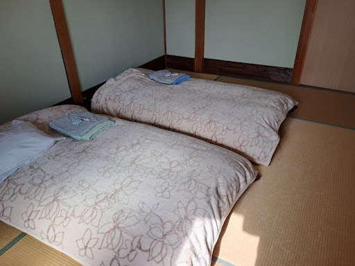 Read moreDas Guest House wird familiär geführt und die Atmosphäre ist dementsprechend locker und freundlich.||Wir waren zu zweit in Japan unterwegs und haben uns in Kyoto dazu entschlossen, mal ein traditionelles japanisches Hotel auszuprobieren. ||Bei der Ankunft wurden wir sehr herzlich empfangen und das auch auf Englisch. Die Besitzerin spricht mittlerweile sehr gut Englisch, auch wenn sie das manchmal nicht so sieht. Unser Zimmer war schon längst für uns fertig, was sehr gut war, da wir nach der langen Anreise mit dem Shinkansen sehr müde waren. Die Zimmer sind typisch japanisch ausgestattet mit Futonmatten, die man abends ausrollt. Sehr bequem. Konnte schlafen, wie ein Baby. In der Mitte des Zimmers stand ein kleiner Tisch mit Sitzkissen außenrum. Wir hatten auch eine kleine Kommode mit einem kleinen Fernseher. Da wir sowieso aus unseren Koffern gelebt haben, hatten wir in dem Zimmer genügend Platz gefunden diese in einer Ecke zu verstauen, damit diese uns nicht immer im Weg standen. Einen typischen Schrank gab es nicht, aber genug Möglichkeiten, seine Sachen aufzuhängen. Spiegel und alles was sonst noch dazu gehört, waren auch dabei. Man darf trotzdem nicht vergessen, dass die Ausstattung nicht typisch europäisch (oder westlich) ist, aber meiner Meinung nach völlig ausreichend. ||Dusche, WC, Bad mussten geteilt werden. Da das Guest Inn aber nicht all zu viele Zimmer hat, mussten wir nicht nur einmal länger warten. Ansonsten kein Problem. Die Dusche im traditionellen japanischen Bad ist auch eine Erfahrung für sich und echt bequem und angenehm!! Im Aufenthaltsraum mit integrierter Kücke konnten es sich alle Gäste am schönen Holztisch gemütlich machen, TV schauen und selber was kochen. Tee und Wasser gab´s gratis. Internetzugang über Kabel möglich oder über den hauseigenen Computer. ||Wenn man nicht vor hat, in einem 5Sterne Hotel zu übernachten und eine familiäre, japanische Umgebung sucht, ist man hier genau richtig. Abends saßen wir mit den Gästen und der Besitzerin zusammen im Aufenthaltsraum und haben bis in die Nacht geredet. Wer sein Japanisch verbessern will, kann das hier genauso tun. ||Die Lage des Hotels ist weiterhin unschlagbar. Nur ein paar Gehminuten vom Hauptbahnhof entfernt. Kleiner Tip: Wenn sie abends ankommen und versuchen aufgrund von Müdigkeit mit dem Taxi hin zu fahren, dann suchen Sie sich auf dem Stadtplan im Voraus die Adresse aus und zeigen diese dem Taxifahrer. Anscheidend haben noch nicht alle mitbekommen, wo dieses Guest Inn liegt. Aber der vorher vereinbarte Preis wird nie überschritten!!||Fahrradverleih möglich, dadurch kann man ganz leicht zu den verschiedenen Sehenswürdigkeiten fahren, ohne viel Geld auszugeben.||Am meisten hat mir die Atmosphäre in diesem Guest Inn gefallen. Bei Fragen konnte man immer jemanden ansprechen und hat sofort Hilfe bekommen. Am Tag unserer Abreise konnten wir auch nach dem Auschecken unser Gepäck bei der Familie lassen und wurden dann höchstpersönlich mit dem Auto zu unserer nächsten Unterkunft chauffiert (natürlich noch in Kyoto). ||Ich werde auf jeden Fall...
