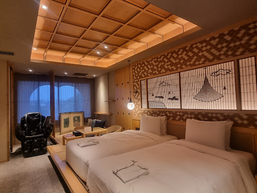 A boutique hotel in the heart of Gion. When you arrive you take an elevator down to the lobby. There is a self check in station but if you wait a few minutes, someone will come up, at least that was my experience. We had our luggage forwarded to this hotel from our previous hotel in Shinjuku and we wanted to make sure we could retrieve it before getting situated. They had it secure and safe in the back, it was easy to retrieve from them. We booked 4 nights through booking.com for the spa room but we couldn’t add breakfast at the time of booking. When checking in we were able to easily add the Japanese breakfast for the morning we desired.