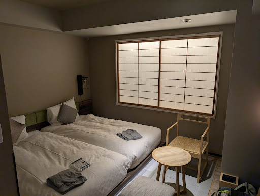 Read moreHotel is few minutes from Kyoto Shiyakusho-Mae station and within walkable distance to Karasuma Oike and Sanjo transfer stations.||Not much suitable if you want to make day trips from Kyoto and therefore Kyoto station, but I consider it great for exploring Kyoto - it is also within walkable distance to Gion and Kiomizudera temple and such (about 30 minutes).||Plenty of shops and eateries around.||Had Japanese modern room with semi-double bed. ||Comfy bed and comfy pillows, quite a spacious bathroom with shower gel, shampoo, comditioner and hand+face foam soap - no more traditionally patterned welcome fabric pouch with amenities, but next to the lobby elevators are biiig choice of amenities to take - even bath salt and cosmetic face mask!||In room - complimentary bottled water, tea, coffee, designer electric kettle, you can also perform your very own little tea ceremony! Loved the beautifully designed tea cups for ceremony.||Bed has dimable lights around the base, good when you don't need or want to turn on room lights.||Hair dryer, slipper and two-piece sleepwear (I have European L/XL size and it fitted me OK) provided.||The most of the room has tatami floor. ||The best room feature for me that I simply loved - window blinds! My room has street view, but thanks to two sliding curtains (thanks to them it could look that the room has no window at all) you can make room dark and silent. Lovely, well done!||Breakfast in hotel restaurant is buffet choice of continental and Japanese.||Hotel offers coin laundry with two washing mashines and dryers.||Loved...