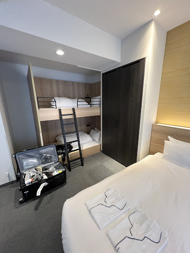 Love this hotel! My wife booked it, so I wasn’t sure what to expect. When we walked in, there were two bunk beds for our kids, two twin beds for my wife and I. A giant family style dining table in the middle, with sofa style seating on both side. A fully functional kitchen. The hotel had the biggest batch of free amenities, like toothbrushes, cellphone screen cleaners, shower caps, instant coffee and tea to a nice laundry facility. Services was fabulous, the staff made sure our stay was pleasurable. Super friendly and welcoming The only reason I took away a star is on location, although there are a ton of places to eat! And the coffee place next door is amazing. It’s not really in a popular area of Kyoto, so there isn’t much happening after dinner hours. It’s about a 30 min walk to that entertainment district. Would definitely return on our next trip. Kids favourite hotel on the...
