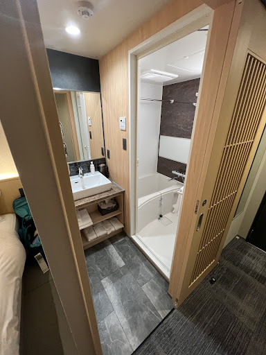 The bath and shower were both pretty spacious compared to other hotels we stayed at on our trip. The AC and air purifier both did a good job of keep the room comfortable. We did not like the pillows provided but used our own travel pillows combined with the provided pillows to sleep comfortably enough.