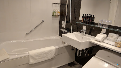 My partner and I stayed here in February, and among the things we miss most from our trip to Japan, is the Kyoto Kamanza Hotel! After our train ride into Kyoto from Tokyo, we were pleasantly surprised that the manager had upgraded us to a 2-queen suite. The room was large and modern, equipped with a large wardrobe and a separate bench for laying out our suitcases. The bathroom was perfect, including tons of toiletries, double vanities, and a split shower room with huge bathtub (I'm 6'2" and could stretch out).