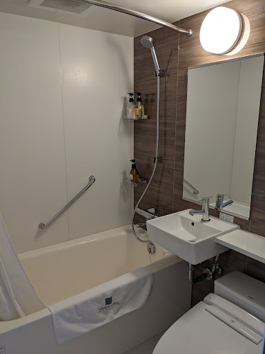 Read moreVery nice, new hotel with a free bathhouse attached. The bath area is small with just two baths, but not complaining because it's free. No complaints about the room, it was perfectly nice and modern and was a little bigger than standard for Japanese hotel rooms I'd say.||||The location is fine but there's not in the surrounding neighborhood. It's a very short walk to Jujo station though and there's a bus stop directly in front of the hotel so you're not far from anything. ||||The Wifi was very bad, it frequently went up and down like a roller coaster. This was actually the only time in the last several years I've traveling in which I've encountered iandequate hotel Wifi, I thought most hotels had gotten it together on that, especially newer modern hotels like this, but apparently not.||||Also should note that housekeeping only cleans rooms once every four days, they say it's a Covid safety measure but I imagine it's probably just a labor shortage thing. I also was made to pay a 200 yen per night tax on my reservation when I checked in, I imagine this is a prefectural or city thing which the hotel has no control over but it surprised me as I don't remember ever having to do that...