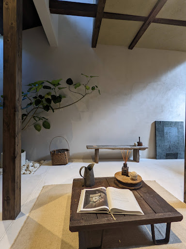 @ the hotel. Love the quiet residential neighborhood and the downstairs minimalist living space. Entrance being on street level, felt like a home and is literally next door to other units. I was in suite 3, 60mÂČ of airy space, super high ceilings. Part of the hotel is POJ studio (with unique craft for sale and hosts workshops), and popular Kissa Kishin cafe