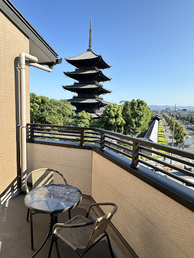 Read moreI booked this hostel based on its price and location.||Just a few minutes walk from the nearest station. You could walk from Kyoto station but it was very hotel and we took the one stop from there to reach the hostel.||||We booked a private room with bathroom. The premium hostel location is superb, you can see a 5 pagoda temple across the road which is quite impressive. It is very easy to get a train but we used the local buses to visit attractions which were nearby. The stop is seconds away! The reception has a few leaflets and you can book a bus tour around Kyoto if you wish. There is a small kitchen.||||So for location 5 stars.||The hostel itself is new and for the price I paid I was very happy. ||Just a few quick notes:||1. The reception staff told us they would be available until 10 pm that night if we needed anything. We went back to the desk around 8.30 pm but there was a closed sign. We wanted to book a taxi which was disappointing.||2. The room was abit smelly. Not sure it is from the drains or what but it was smelly when we entered. After we put the aircon and dehumidifier on it did seem to go and when you were in the room it was not noticeable. But if we went out and came back it was very noticeable.||3. Noise from the crossing outside...constant beeping. With the air con on it was okay.||||Good for a short stay and...