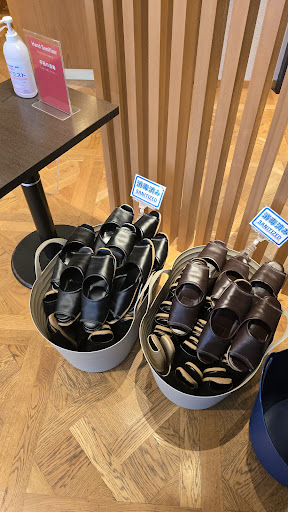 At the entrance, you will need to remove your shoes and put them on the shelves, and use the provided slippers. Be careful with your head!
