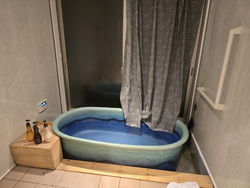 Read more県外勢からするとここが京都市内?ポツンと一軒家に行くのかな?とビックリするくらいの山道の先にありました(運転がよほど不得手でなければ大丈夫な程度です)。その分自然に恵まれた素晴らしいロケーションです。山中の川沿いで程よく高台になっており、室内の壁一面の窓から見える景色が最高。川音も聞こえてほんとに自然の中にいるんだなあと実感できます。外に出て河原のそばで焚き火もできるよう準備されていました。 オプションのテントサウナは、到着するとプライベートデッキに設置してあり、薪ストーブに火をおこして温めるようになっていました。お風呂屋さんのサウナしか入った事がなくネットで調べて水着やサウナハットを準備し寒さ対策などもかなり心配していましたが、うっすら汗をかき外に出ると外気が心地よく、またテントサウナに入って汗をかいてと楽しめました。人目を気にせず入れたのも特別な体験という感じがしました。 施設はほとんどリゾートホテルかなと思うくらいの綺麗さ快適さです。朝夕食事付プランにしましたが、全ての食材が用意されており自分で調理する形態で、そこにホテルではないグランピングらしさがあります。とはいえ、火を扱うのはBBQグリルに炭火をおこすだけ。炊飯は用意されている土鍋に着火剤で失敗なく炊けるし、食材はカット済みでそれぞれ蒸し器具など準備されており、マニュアルを見ながら用意すればほとんどのものが20〜30分ほどで完成します。通常のキャンプだとなかなかこう手際良く品数を揃えて食事することは出来ないので、少し手間をかける楽しみというレベルでそこも私たちには程よかったです。アウトドア調理得意な方なら食材持ち込みするのもいいと思います。非日常を極めたいなら豪華食材を堪能できる食事付きはおすすめできると思います。 アウトドアダイニングはこの時期風が入らないよう透明のもので囲ってあり、こたつとホットカーペットも設置されていて、ほんとの屋外よりは快適に過ごせるようになっています。フリースや厚手の靴下も持って行ったので食事の用意と食べる間くらいの時間なら寒い思いをすることはありませんでした。お風呂もお湯が張ってある状態で湯温が保たれており、サウナ前後やちょっと温まりた...