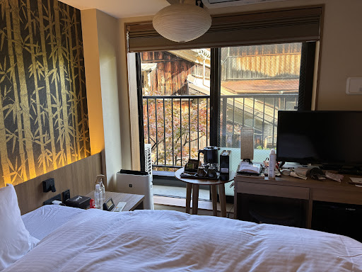 Read moreWe are a family of 4, two adults two young teens. The room size was perfect. One queen size bed and two comfy twin size foldable floor mattresses were provided. The kids had fun sleeping on the foldable mattresses on the tatami mat flooring. The interior was a chic design: light colored woods and neutral and whites throughout. Dark carpet. Clean throughout. No odd smells. GREAT water pressure (fire-hose like). Definitely a huge difference over the dated 70s era smelly hotel we paid over $400/night for while in Tokyo. We couldn't hear any talking from the people occupying upstairs, but could hear the thumping whenever they walked. Not a big deal for us as it didn't happen during our 10pm sleep time. Location in Gion was perfect. We were 3 blocks away from the main street in Gion where all the shops are. We were also a few blocks away from one of the subway stations and the bridge that leads to the modern streets of Kyoto. This hotel provided a terrific home base for our travels. Yes, having a comfy hotel that you feel safe in DOES matter, even if you don't plan on spending many hours in the room. At the end of a LONG day, you want to look forward to putting your feet up somewhere...
