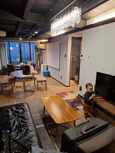 イオンモール京都から徒歩5分、京都駅八条口からも近い、静かな路地にあります。 外装もさることながら、内装もとても良い雰囲気。 日本風の良さを残しつつ、海外のコテージにいるような雰囲気も味わえます。 なのに、物凄くアットホーム!まるで自宅でくつろいでいるような時間を過ごせました。