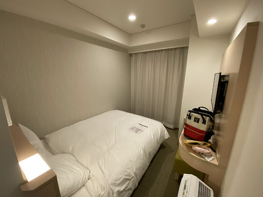 I can accept that Japanese hotel rooms are just smaller overall. I stayed in a single room and it was just enough space for me as one person and with one large suitcase. Not much table space. The room was well cleaned but they only empty rubbish that’s placed in the bins which were very small. I hope the hotel can provide another bin or recycling location dedicated for paper recycling (from all the shopping bags!) which could not go into the general or plastic bottle recycling bins. The bathroom had bit of an unpleasant odour, but not noticeable when door is kept shut. There was also a noticeable step up/down going in/out of the bathroom, I understand it’s to prevent flooding but you do need to watch your step.
