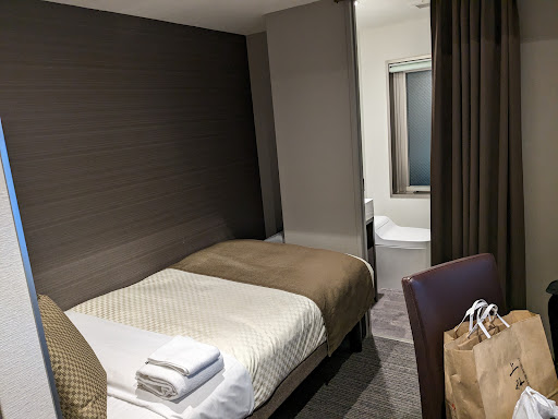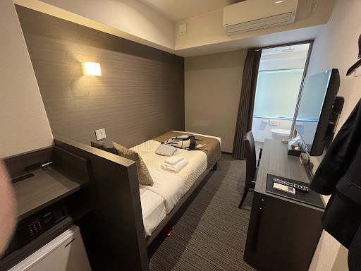 The single room was not large, but it was compact and functional. The restroom and shower booth are next to a large window (no problem since the blinds are closed), which is an interesting structure. The public bath was clean, and although the breakfast wasn't luxurious, it was sufficient. I stayed there to go to a live house near Nijo Station, but the Sanjo-dori shopping street that is right next to the hotel extends all the way to Nijo Station, so I was able to enjoy the shopping street as I went, and it was rainy on the way back. But thanks to the arcade, I didn't get wet. Convenient as there is a convenience store nearby. Oh yeah, there's free coffee and tea in the lobby.Unfortunately, the emergency bell malfunctioned and we had to evacuate outside at night, but I think it was unavoidable.It was a great...