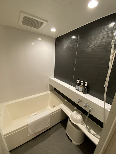 The room itself was spacious, clean and well equipped with everything we needed. Daily cleaning was excellent. There's a l Lawson convenience store nearby. Perfect for grabbing a late-night snack. The hotel also offers complimentary water, coffee, tea,... at the reception.