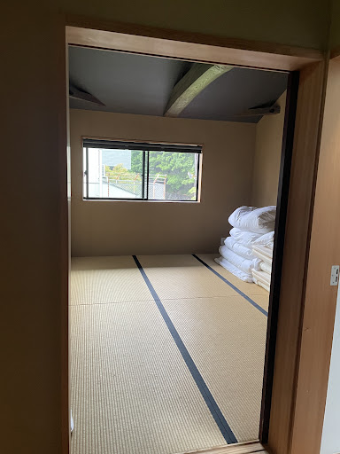 On the second floor, you’ll find a Western-style bedroom and a Japanese-style bedroom. The Western bedroom has a queen bed with bedside tables on both sides, but no power outlets nearby, which was a little inconvenient. The aircon is positioned right above the bed. The bed was comfortable, but the aircon was a bit finicky — it would turn off once it hit the set temperature and only come back on when it sensed a change. I contacted Machiya, and they were super responsive, sending a maintenance team to check the aircon. They even followed up with us afterward to make sure everything was sorted. Amazing service. The Japanese-style bedroom had two futon beds, and according to my friends, they were really comfortable. The aircon worked perfectly in there too.