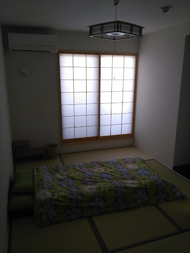 Exemplars of Buddhaâs teachings on right livelihood, theyâve created a real home away from home for travelers yearning for a more ethical-/eco-friendly place. Most graciously, the Addams offer their five upstairs private rooms at much lower prices than anywhere in Kyoto for such high quality. Itâs a blend of traditional Japanese ryokan with a modern Japanese hotelâs amenities: attractive rooms with futon, pillow, and bedding for either cold or hot season, a low bamboo swivel chair, tatami mats (6 or 8 mats, depending on room-size), a Zen-styled tokonoma alcove, and shoji screens for a small balcony (behind sliding glass doors & bug-proof screen). For this solo traveler, it felt very spacious.