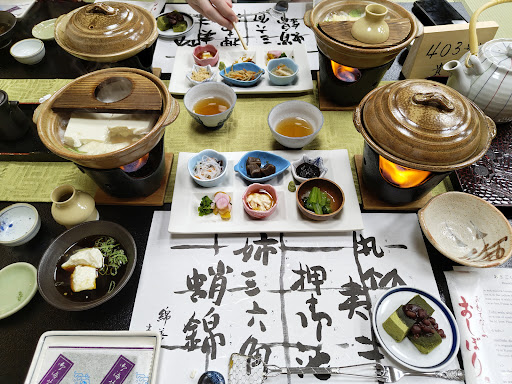 We opted for one kaiseki dinner (which isnt brought to our room but a communal room specifically for dinners) and one breakfast (set up in a dining hall on the first floor) as we were only staying two nights. I really enjoyed the dinner experience overall but the food wasn’t my favorite. This could just be that Im not super used to the style of it, that’s all. But the staff was super great at making us feel like honored guests through the whole experience. The Japanese style breakfast was much more to my taste and the service was also impeccable. Overall I would recommend trying both services if you can.