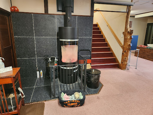 Read moreThey offer a private Hot springs with a fee which worth to reserve at least an hour. You can completely stay in sane to enjoy sound of hot springs, enjoy color of sky with contrast of trees. Of course, they have hot springs without a reservation which you can soak in anytime (both are very beautiful and clean. In door and Out door tubs.) They have spacious space with a fire place, and comics where you can relax . Many fans are placed high above to circulate air in and out (due to COVID.) If you like Japanese food, you may like to reserve a room with dinner to enjoy culinary speciality from the region. I enjoyed a cup of free original coffee in...