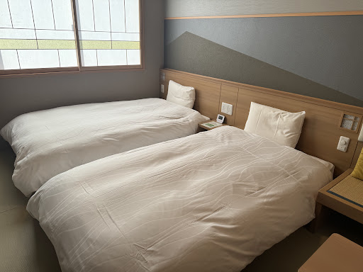 Pros Hotel is a 5mins walk due north to Matsumoto train / bus station. Smallish room, but technically XL x2 luggage would be possible Walk-in shower, good water temp / control / pressure Double window sealing (but both can be opened), train noise not an issue at all, with blinds as well as it can get pretty warm in afternoon (direct sunlight in spring) Buffet breakfast was a good spread (eg DIY sashimi bowl, tempura station, soba station, small plates dishes aplenty); supper time ramen was a nice stomach warmernfor bedtime/ post onsen Tatami system in hotel means your shoes off at lobby (individual locker system), and go barefoot or slippers on; also, wear the in-room yukata if you want for meals! At rest area outside onsen, free milk yoghurt in the AM and popsicles at the PM