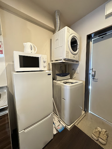 Read more洗濯機、洗濯乾燥機、冷蔵庫、電子レンジ、ポット、ドライヤーなどアメニティや家電は充実しており満足です。 お安く泊まれて長期滞在にぴったりな宿だと思いました。 近くにはゲームセンターやコンビニ、マックスバリュ、マックなどあり立地は良いです。 ただ一回室内掃除を忘れられ、すみませんーくらいの軽い対応をされ少し嫌な気分になりました。 こちらは室内掃除が入るとのことで私物をある程度片付けていたので… 次の日にはしてくれましたがまた私物を片付ける作業が再度発生したためなんだかなぁという感じ…… それと宿泊者の方でしょうか?ホテルの駐車場で犬をリードなしで放している方がおり、私がホテルに入る際に寄ってきて怖かったです。 文句を言うにもフロントに人がいないし…宿泊者の方のルールやモラルを守る意識が低いとやりたい放題だなぁと感じました。 そのゆるい感じが許せる方や清掃なんて来なくていっかくらいの方だっ...