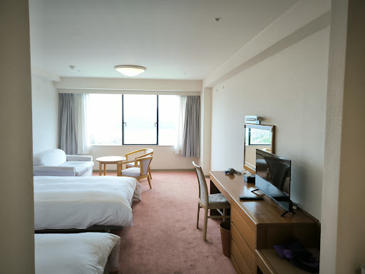 Read moreWe stayed here for ten days and it was way too long. I only say this due to the location of the hotel in relation to the town and not because there isn’t a lot to see in Miyazu, Amanohashidate and surrounds. The hotel operates a shuttle twice in the morning and four times in the afternoon (the last one is 5:20pm) but this does not allow you to eat dinner in the town. It was ¥3600 to travel from Miyazu Station to the hotel by taxi so you end up stranded at the hotel with only the buffet dinner option unless you’re happy to take a taxi. The buffet breakfast and dinner is the same every day so after two days it becomes tiresome. We ended up getting noodles from the supermarket in town and cooking them with the kettle as the hotel doesn’t offer a microwave. The rooms are amazingly spacious and unlike any hotel I’ve ever stayed in throughout Japan. The lounge hour is a nice touch serving alcohol, soft drink and tea. Except at breakfast, there’s no opportunity for a hot coffee any other time of day at the hotel. Iced coffee is available from the vending machine. The hotel has a laundry and onsen too. Staff are very grumpy in the restaurant except for the two lovely women who cook the eggs and pancakes. In ten days, we only had housekeeping once despite requesting it two additional times. They don’t clean your room for stays of four...