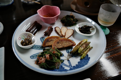 食事については、見事なまでに地産地消の里山料理です。特に、山菜料理やジビエ料理が絶品で、ラインナップ豊富な球磨焼酎と合わせて、至福の時間を過ごせます。 食事処は、椅子席と座敷の2種ありますが、予めお願いしておけば選択可能です(私はいつも椅子席をお願いしています)