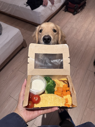 それと、もう一点は ワンちゃん用の食事を頼んだのでが、ボリュームもあり良かったのですが、大きいので そのまま食べさせれないので手で細かく切ったりちぎったりしてお皿に移し替えました。 出来れば、ブロッコリーやじゃがいもなども切れる物が有ればと思います。勿論、子供さんもお手伝いされるかと思うので危険でない程度の物で対応頂けると嬉しいです。