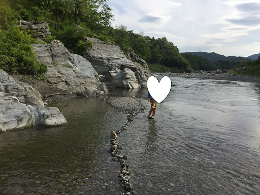 川沿いのサイトが人気で、そこから埋まっていくようです。 うちは川沿いが取れたので、川を眺めながらキャンプができて景色はとても良かったです。 川に出られる場所は限られてますし、川遊びは禁止なようですが、 岩場を歩いたり登ったり、珍しい色の石を探したり、子供は楽しそうでした。