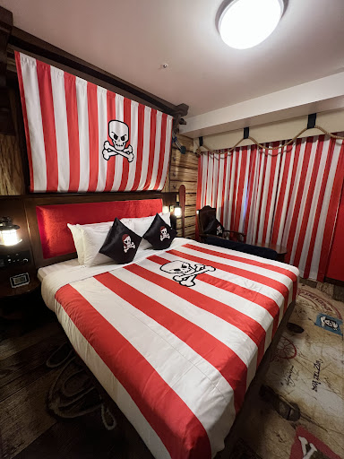 Staying here was an experience, from start to finish. The Lego theming begins before even entering, with the appearance of the building, and Lego models in front of the entrance. While waiting to check in, there's Lego flying above your head, and a big pit of Lego for children to play in.|Everything is colorful, and Lego theming is everywhere. There is a sense of fun to everything. Even the lifts are exciting, as dance music and party lights spin around as it takes you to your floor. The theming in the corridors makes it clear which section you're in, and it all carries on into the rooms.|There are Lego models everywhere in the room, and Lego theming on the walls and floor. There is a safe with some free Lego sets, which can be unlocked after solving some riddles involving details in the room to get the code. Great fun!||In terms of the room, it was very clean, amenities were good and all Lego themed, and the coffee and hot chocolate (cocoa) were both great. The bed was very comfortable.||The restaurant has a lot of Lego theming, and there is a play area for children.|The price for dinner, which includes one a la carte dish and the buffet, is high but worth it. The food was all excellent. My only disappointment is that I wasn't hungrier, so I couldn't eat more.|Breakfast was included, and the breakfast buffet was again excellent.|For measures against Covid, everyone wears a mask when not at their tables, and at the buffet everyone uses disposable plastic gloves. There is also alcohol spray, of course.||Staff were always cheerful and helpful.||(Finally, during dinner, there was a photo opportunity with a chef Lego character. From a table by the window, I watched the chef (person in a costume) come from somewhere behind Legoland, and after the photo session they returned. Not only were they in the costume the entire time, but in character, waving and acting like a Lego character, until they finally were out of sight after entering a doorway quite far away. A brilliant detail that keeps the magic of Legoland, for anyone sat by the window who might just happen to...